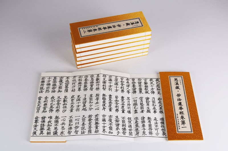 竖排手抄经书中国古代楷书法帖临摹大乘妙法佛教经典 弘化社编珍贵影印版 苏州古吴轩社 卷折本全套一函七卷 思溪藏·妙法莲华经