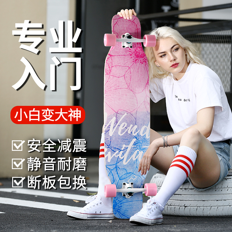 长板滑板抖音同款 男女生成人初学者青少年刷街四轮公路双翘舞板