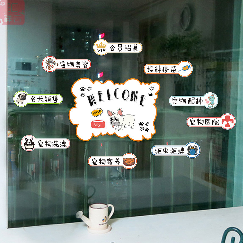 彩印宠物店玻璃门贴纸宠物美容医院装 饰墙贴定制广告贴字