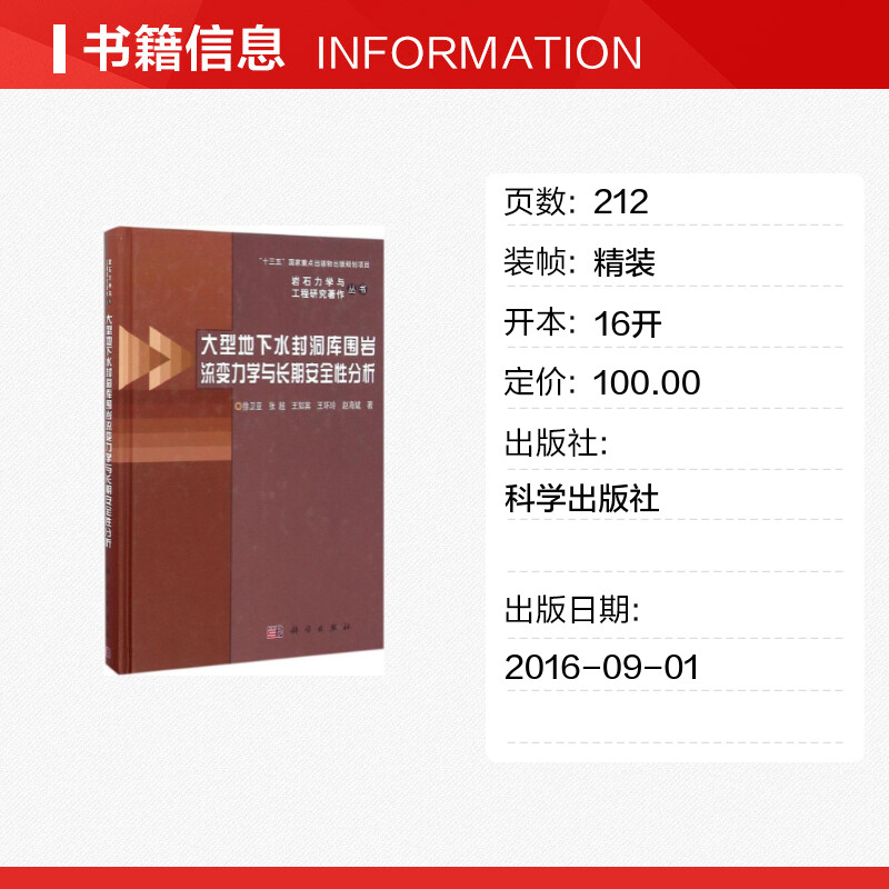 著 石油 科学出版 徐卫亚 社 图书籍 等 新华书店正版 大型地下水封洞库围岩流变力学与长期安全性分析 天然气工业专业科技