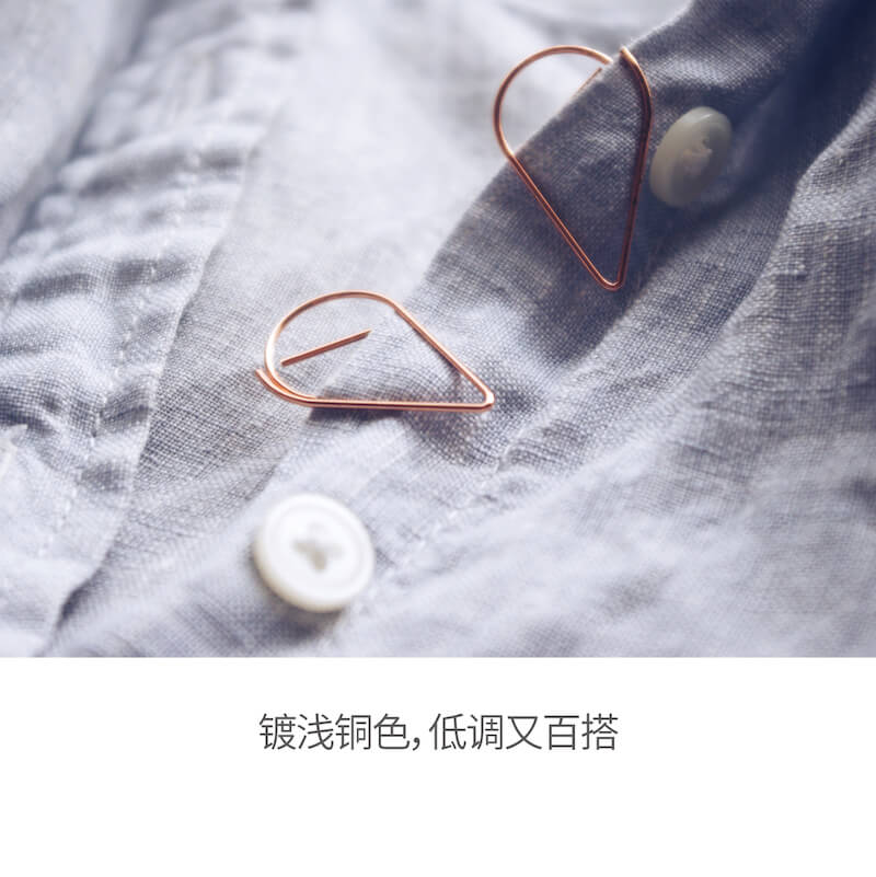 玫瑰金色 浅铜色金属水滴书签回形针雨滴形状 一包12颗 回形针书签创意可爱曲别针回形针 百词斩文创
