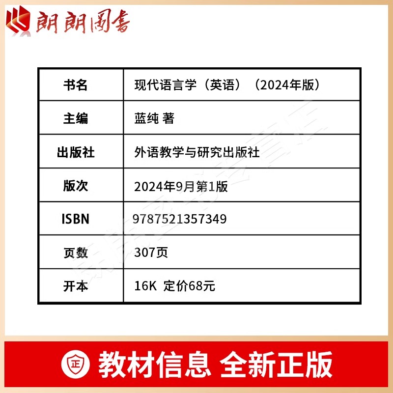 社自学考试指定书籍朗朗图书自考书店 何兆熊梅德明外语教学与研究出版 2025自考13165教材00830现代语言学英语2024年版 蓝纯1999年版