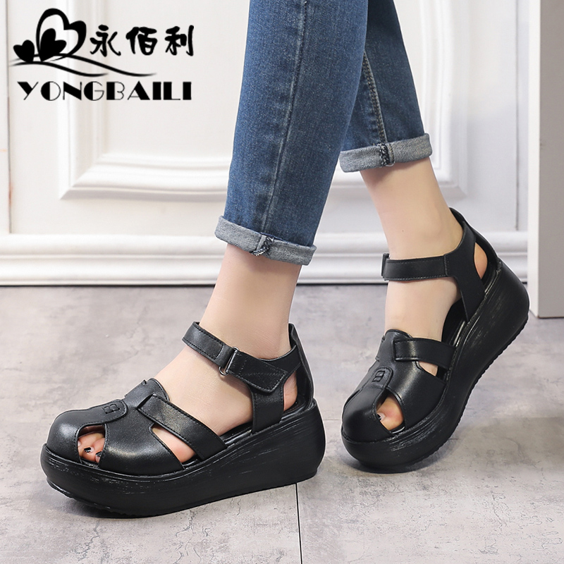 新品 猪笼鞋 高跟厚底包头凉鞋 皮鞋 女休闲镂空软底松糕女鞋 2025夏季
