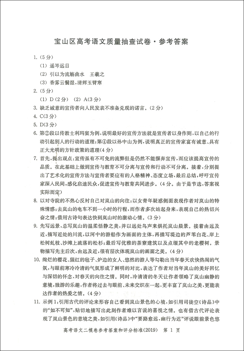 2019版 语文 答案 高考冲刺模拟试题试卷答案 上海市各区高考考前质量抽查仅一本答案 现货 高三学生 走向成功高考二模卷