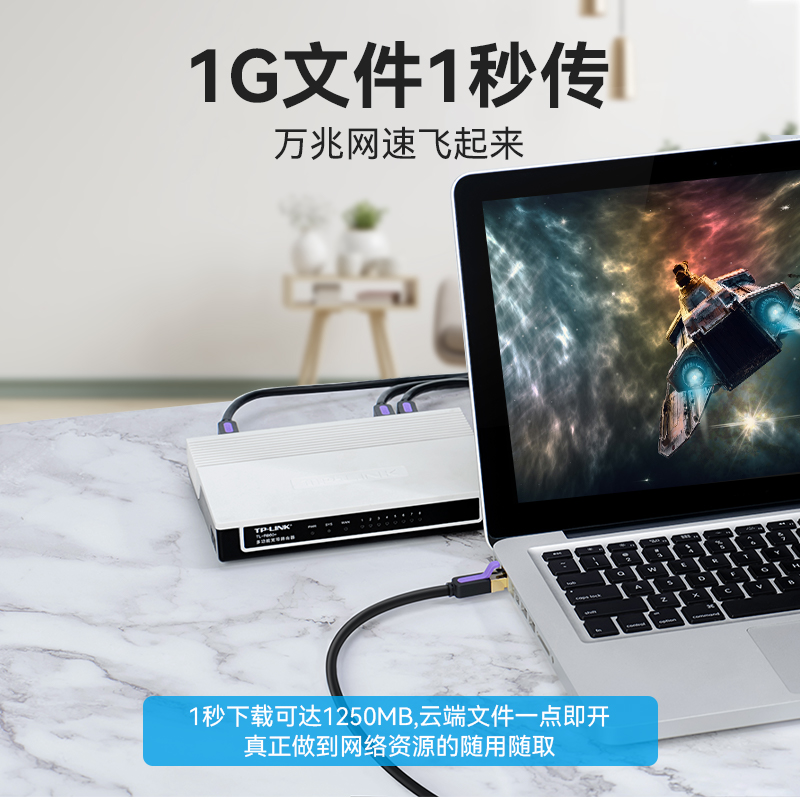 绿联网线家用千兆超六类6五5连接笔记本电脑宽带wifi路由器网络扁