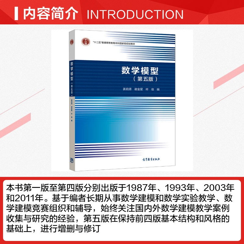 姜启源谢金星 第五版 第5版 数学建模竞赛辅导 数学模型 高校数学建模课程教材 清华大学数学建模教程教科 新华正版