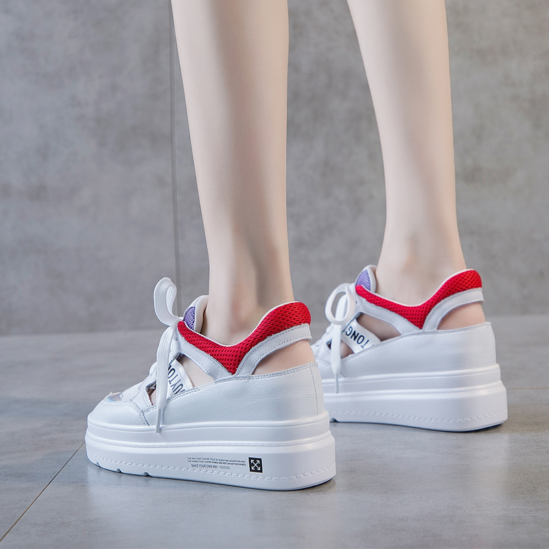 2020包头凉鞋 8cm 女夏运动厚底内增高百搭网面透气镂空洞洞松糕鞋