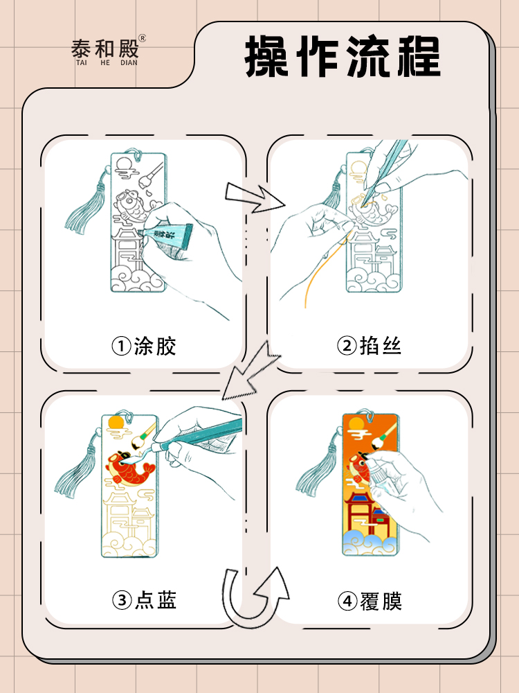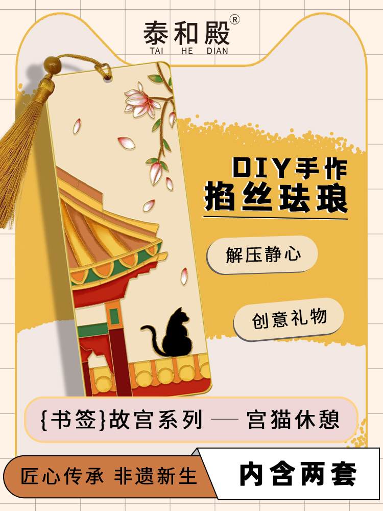 学生企业社区团建活动 闺蜜女生同学生日礼物 景泰蓝非遗文化古典中国风创意手工制作工具材料包 国潮 泰和殿掐丝珐琅书签diy套装