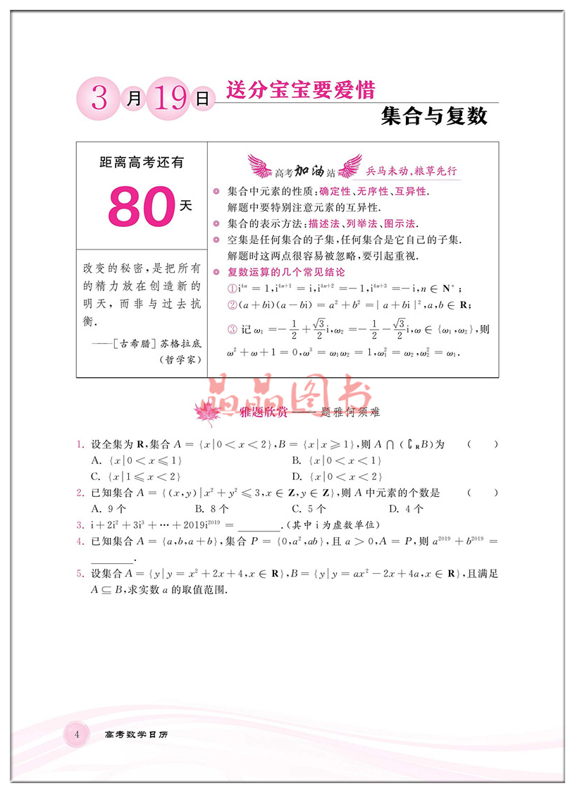 高考数学日历 2019浙大数学优辅倪嘉礼龚雷何龙泉高考数学高中数学高二高三考前冲刺高考倒计时高考日历小题狂练新高考全国浙江