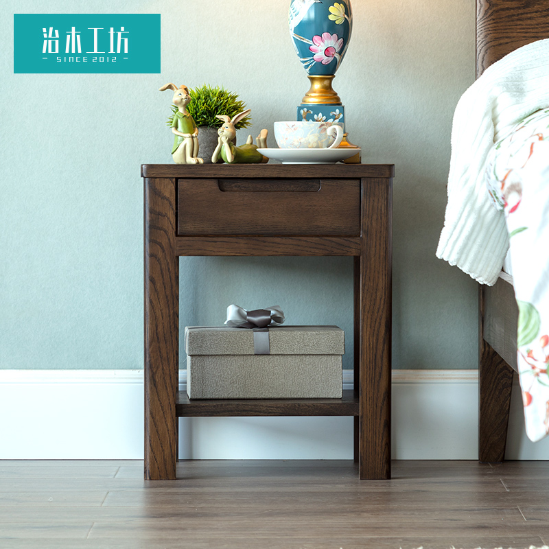 治木工坊全实木床头柜单抽橡木床边柜小储物柜北欧简约卧室家具