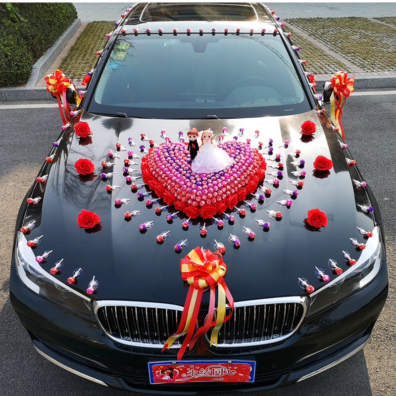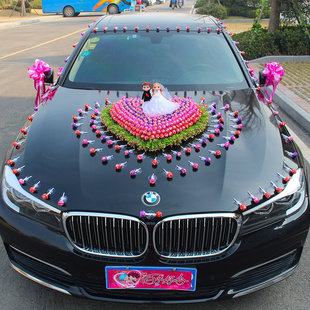 婚礼结婚庆用品车头花婚车装 主婚车花仿真鲜花布置副车花盘 饰套装