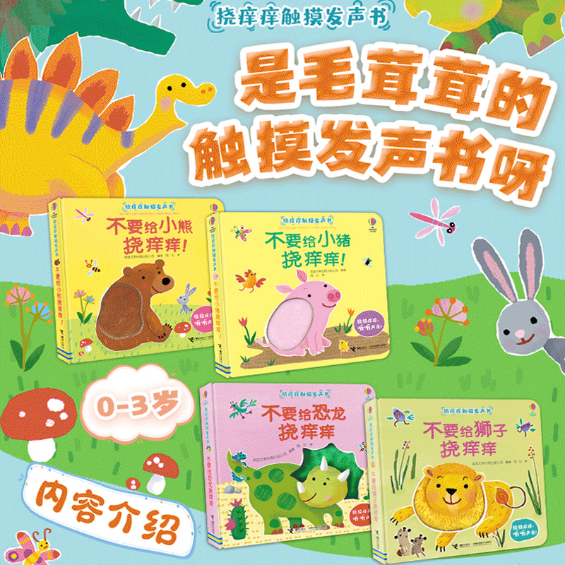接力正版 6岁婴儿童绘本图画书幼儿早教启蒙认知益智游戏书幼儿园大中小班宝宝触摸体验发声书 挠痒痒触摸发声书全套4册