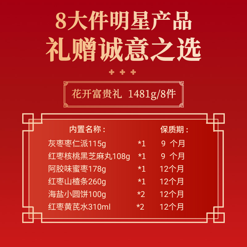 好想你红枣坚果礼盒零食大礼包枣仁派芝麻丸节日送礼就送花开富贵