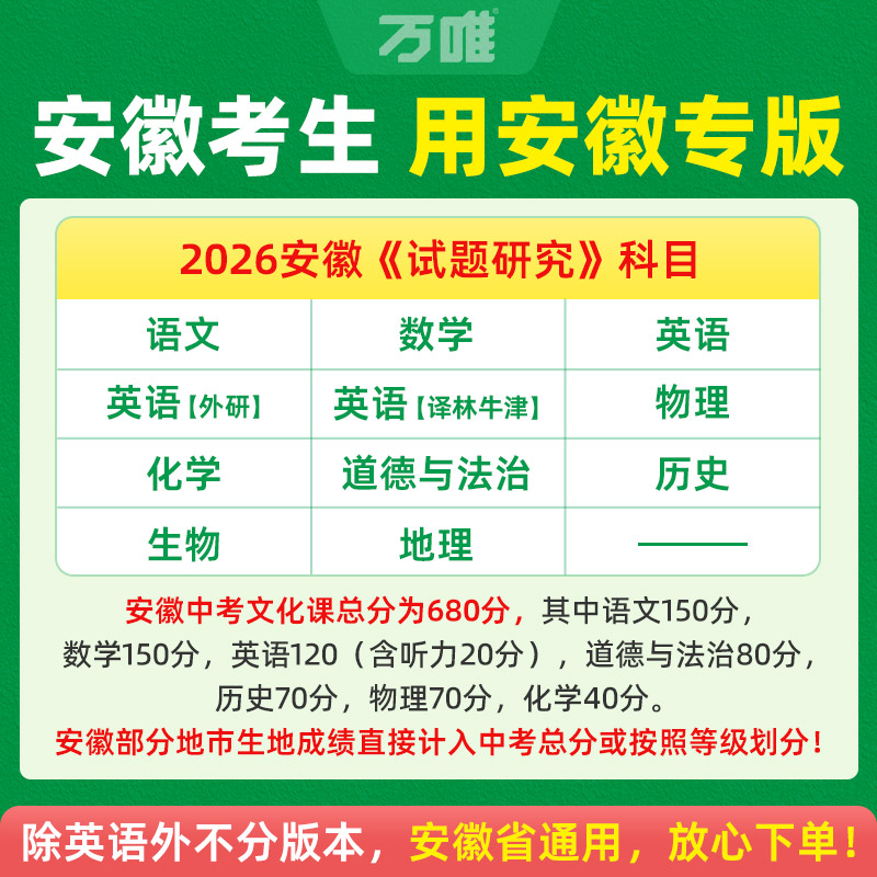 2026万唯中考试题研究安徽语文数学英语物化道法历史生物地理初三总复习资料全套七八九年级初三中考真题辅导资料万维旗舰店