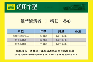 适配别克全新君威1.5T新君越迈锐宝XL 曼牌空气滤芯 1.5T空滤