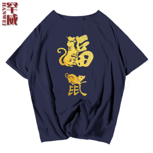 体恤可定制上衣服 男女纯棉半袖 鼠年大吉2020年本命鼠年短袖 T恤衫