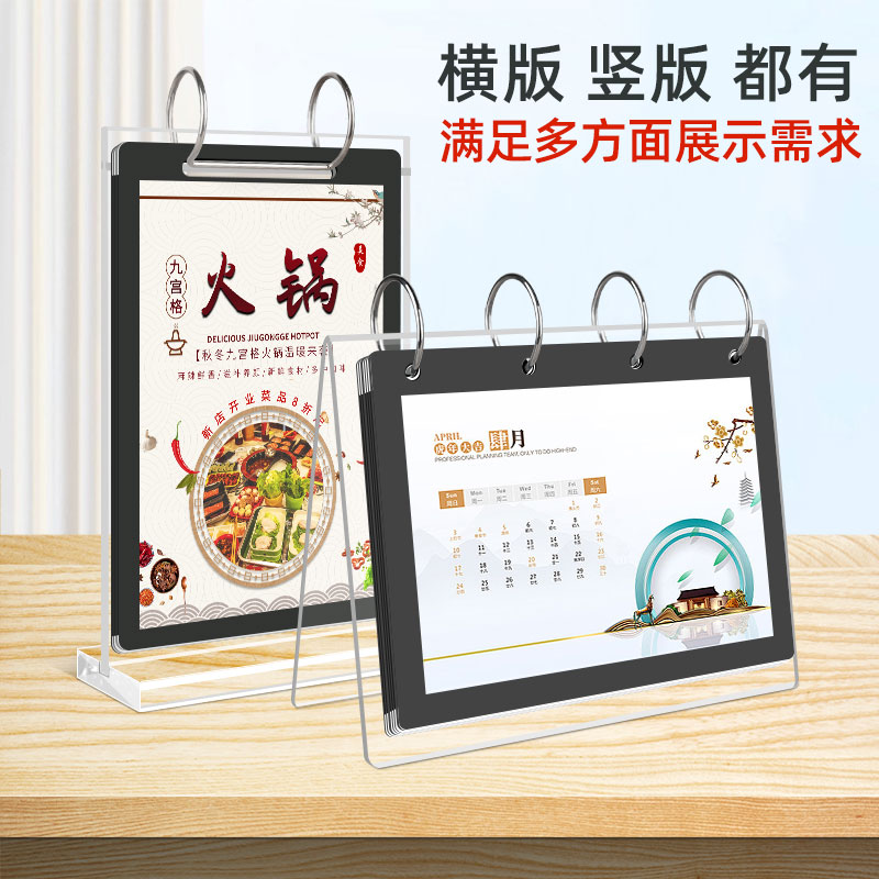 菜谱菜单展示牌 A4翻页台卡亚克力桌牌活页菜单菜谱展示牌酒店酒吧餐厅双面价格牌价目表产品餐牌酒水标价牌