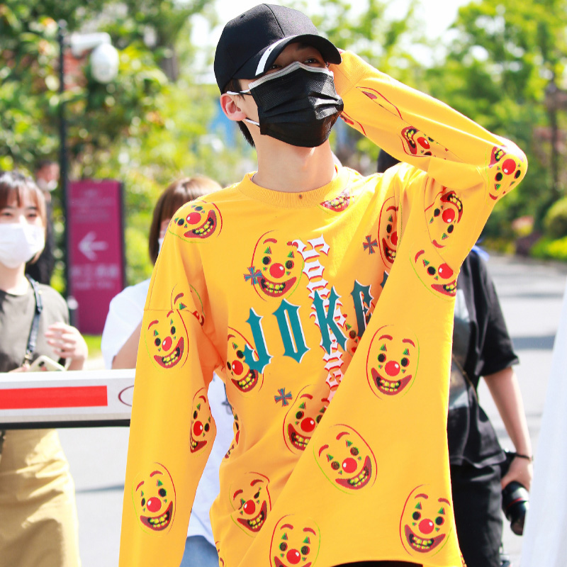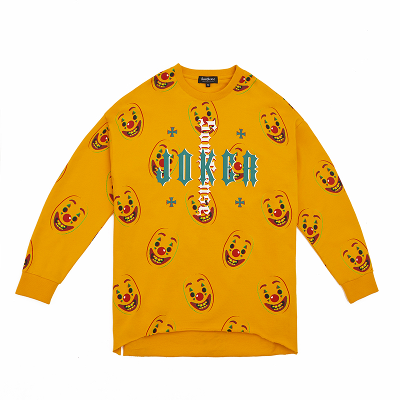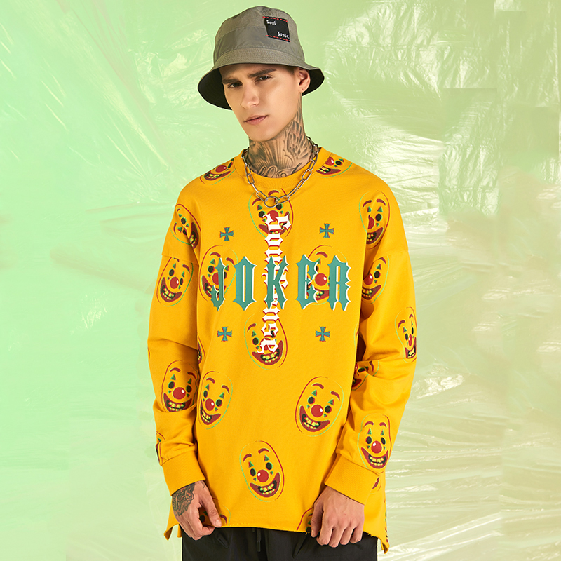 SoulSense何洛洛同款 T恤上衣印花嘻哈宽松潮牌彩红 小丑Joker长袖