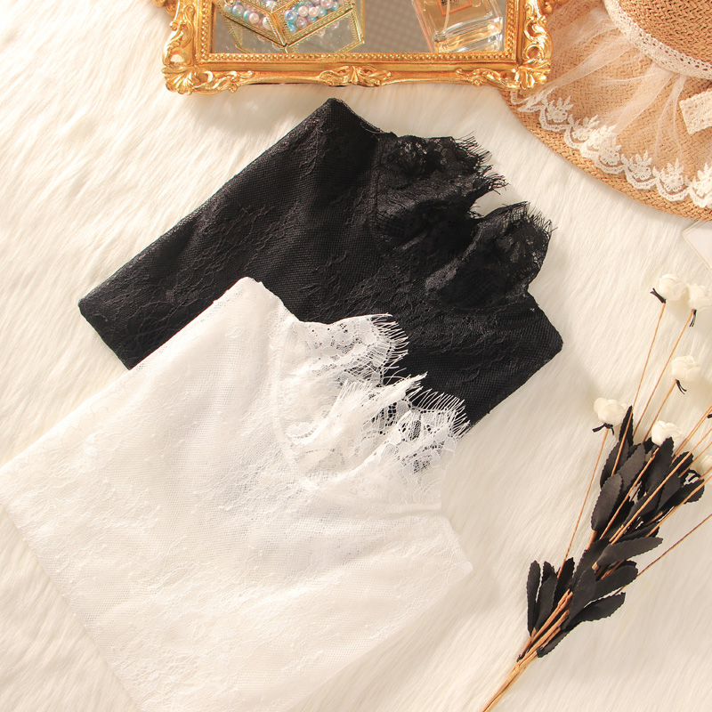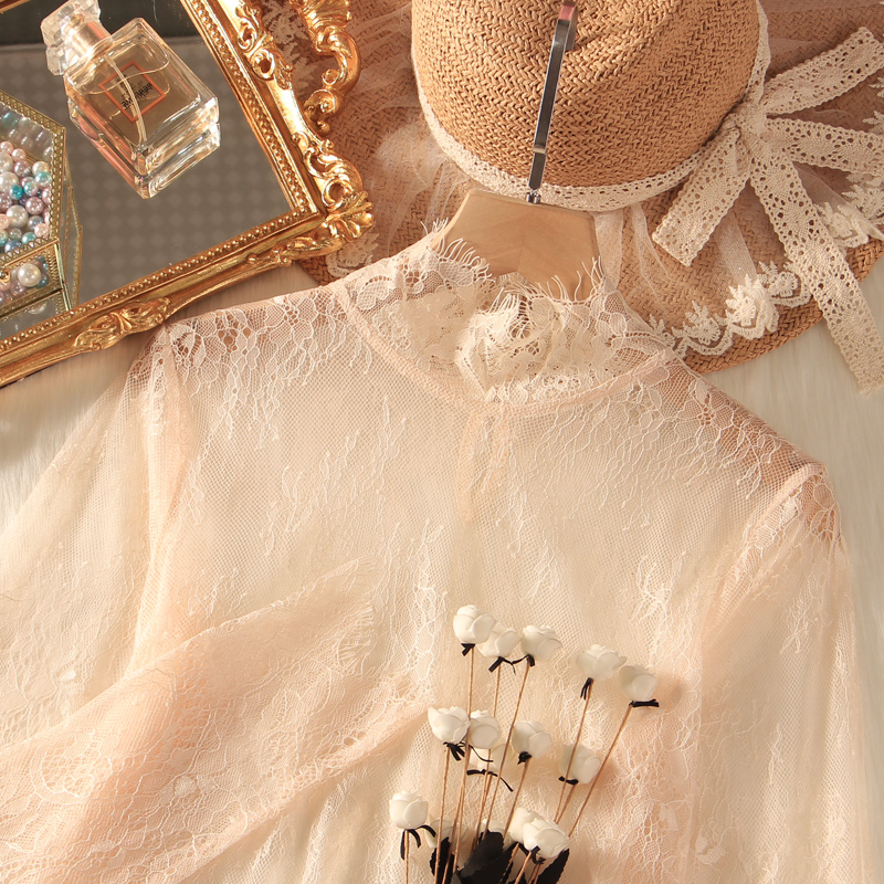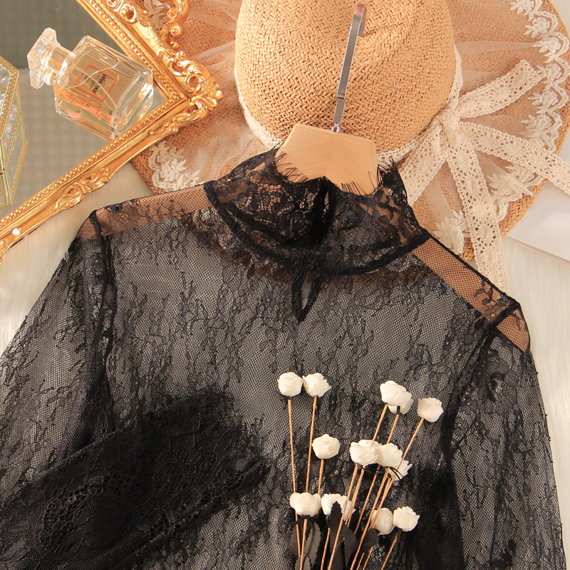 网纱上衣 性感镂空洋气毛衣内搭大码 黑色高领蕾丝打底衫 女早春新款