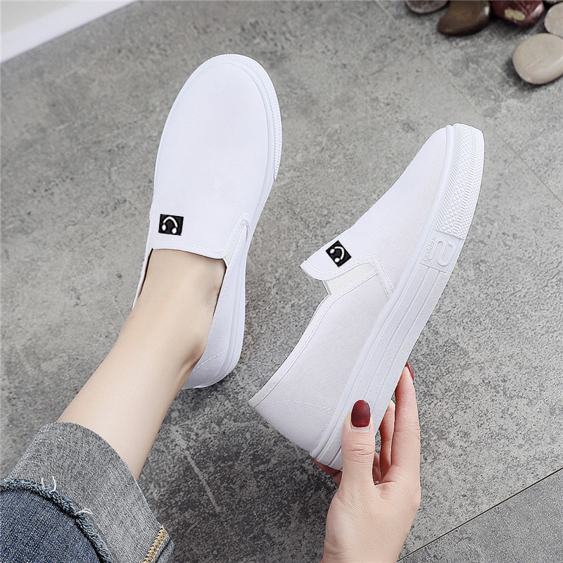 女学生休闲布鞋 帆布鞋 韩版 一脚蹬女鞋 2025春季 厚底懒人小白鞋 新款