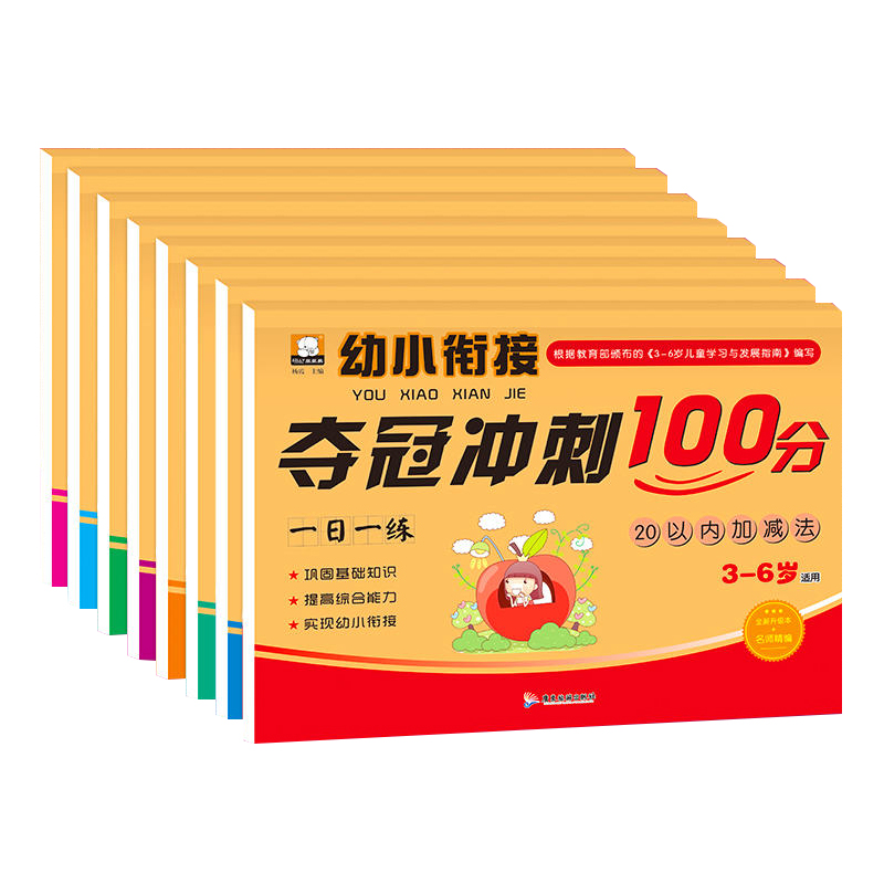 升小学数学题10 幼儿园大班升一年级幼升小一日一练 学前班试卷测试卷8册 拼音拼读训练 20以内加减法口算天天练 幼小衔接教材全套