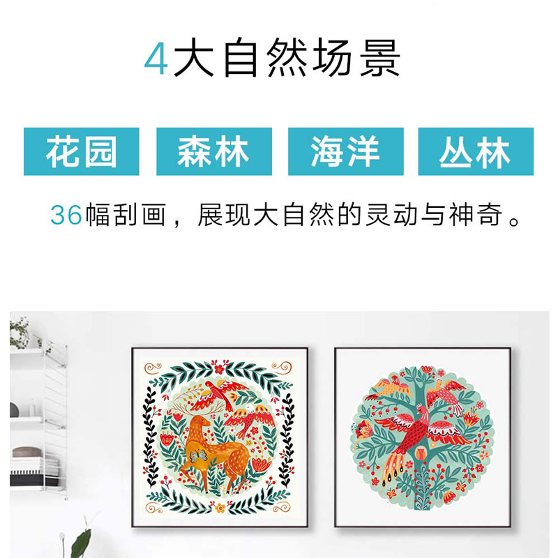 6岁儿童启蒙认知奇妙绘本婴儿成长读物 大自然刮画书 神秘海洋 隐秘森林 魔法花园 神奇 全4册 奇幻丛林 赠木质刮画笔