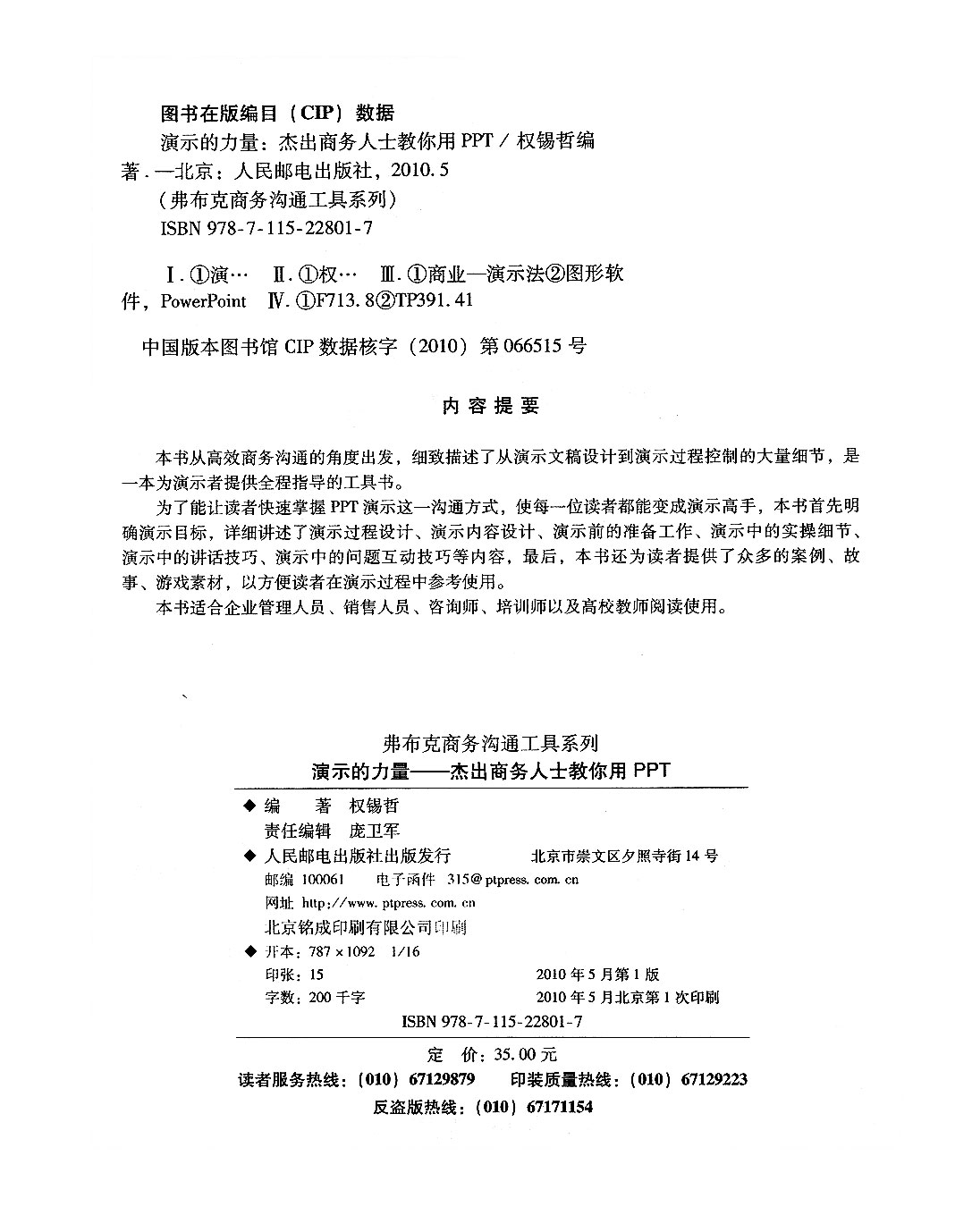 杰出商务人士教你用PPT 力量 权锡哲 编著 社9787115228017 库存书正版 人民邮电出版 演示