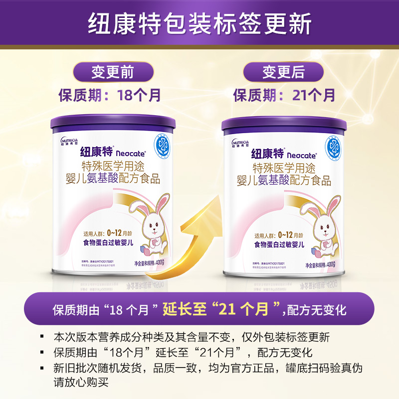 预售 纽康特氨基酸特殊医学用途配方食物蛋白过敏婴儿奶粉400g