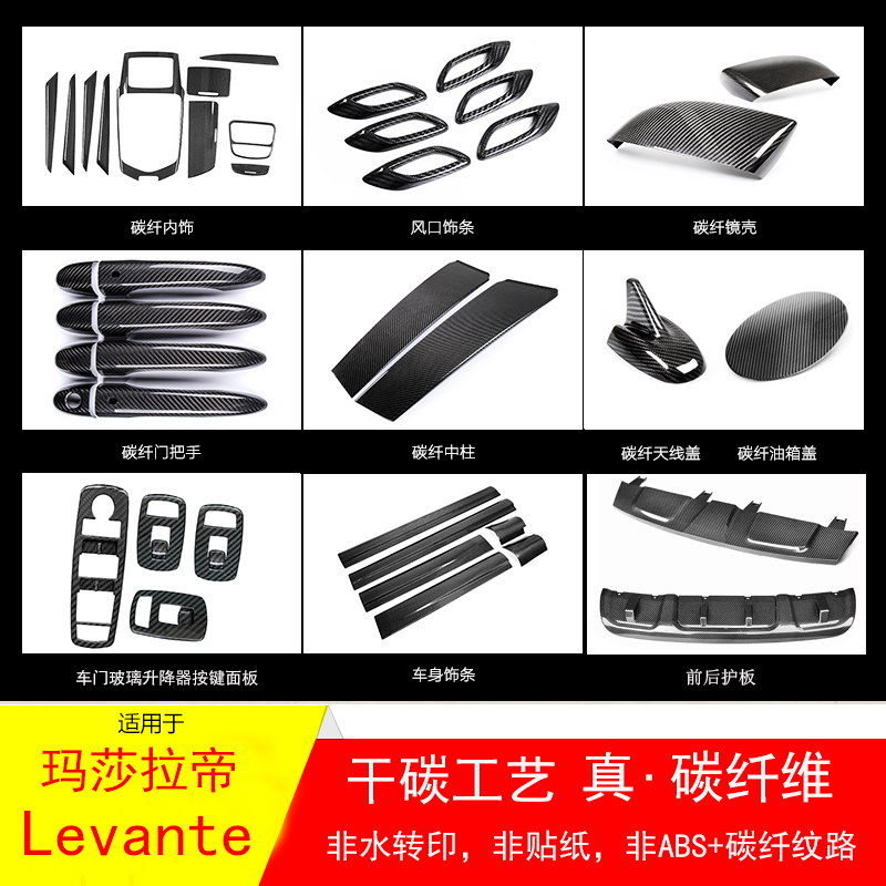适用于玛莎拉蒂莱万特Levante改装 饰后视镜门拉把手 干碳纤维内装