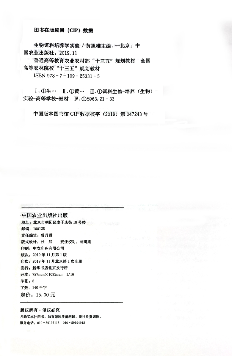 黄旭雄主编 生物饵料培养学实验 9787109253315 中国农业出版 生物饵料培养学实习指导 正版 社教材 包邮