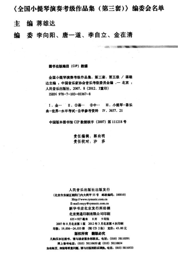 蒋雄达9787103033678人民音乐出版 全国小提琴演奏考级作品集 中国音乐家协会社会音乐水平考级教材 第五级附光盘 社 第三套