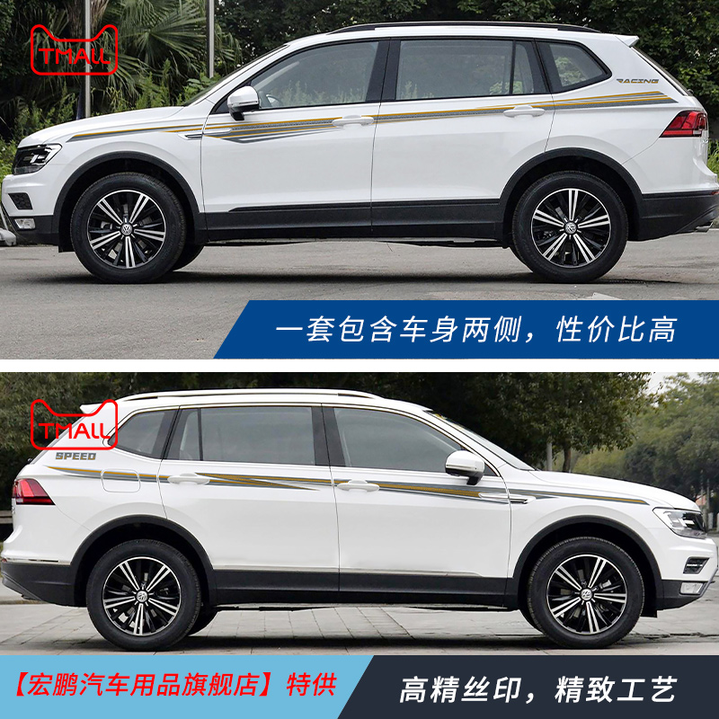 饰彩条车身贴途观l改装 大众途观L拉花腰线装 配件原厂贴纸 20款
