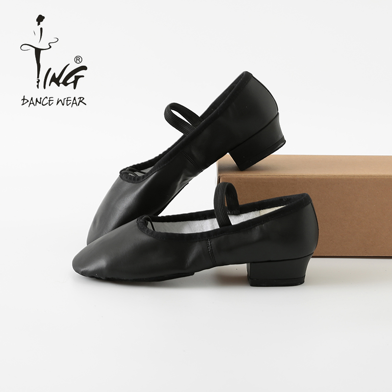 民族民间肚皮黑色跳舞鞋 舞蹈软底带跟练功鞋 子 皮教师鞋 TING陈婷