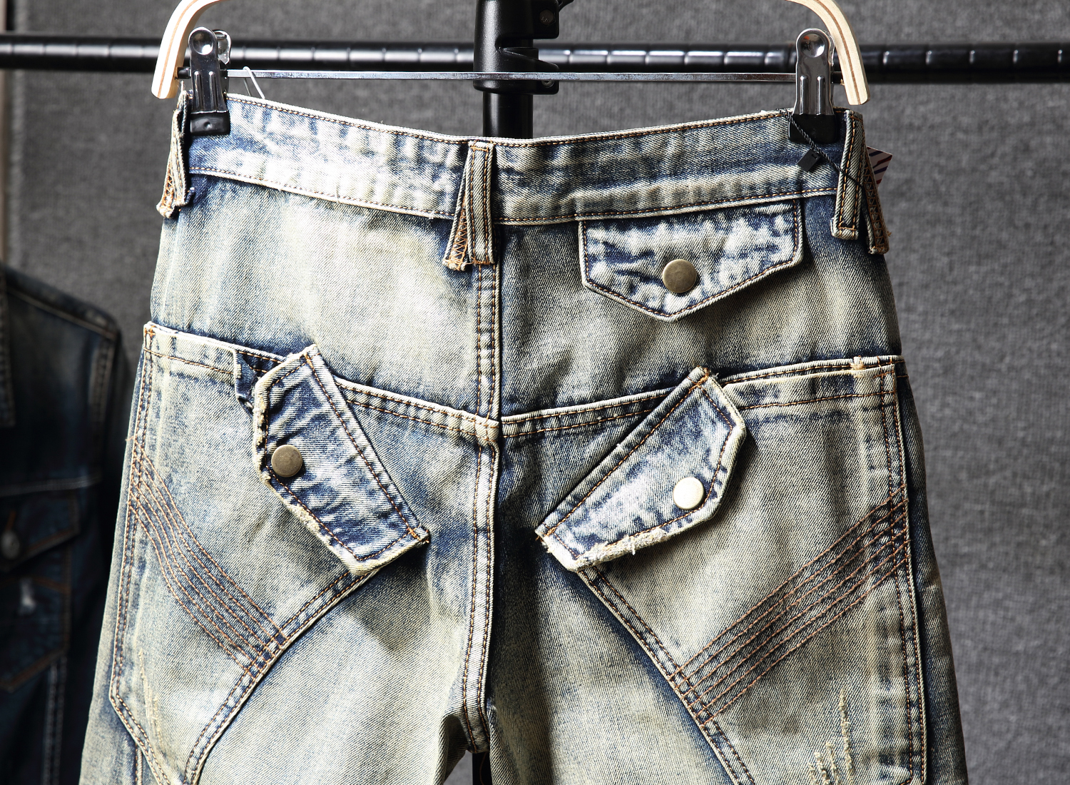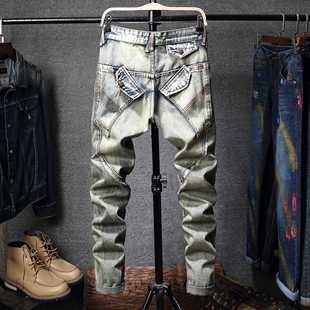 新款 子欧美潮流个性 复古拼接牛仔裤 直筒怀旧长裤 百搭 男修身 秋冬季