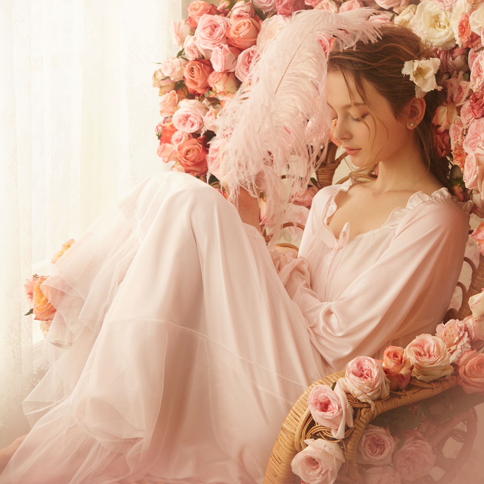 幸棉法式 睡裙女秋超仙睡衣家居服露背高级感连衣裙宽松长裙子 长袖