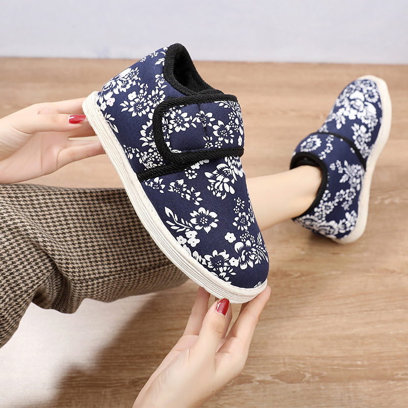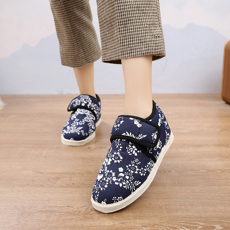 女冬 中国风青花色中老年妈妈保暖布底棉鞋 汪源千层底棉花女鞋 冬季