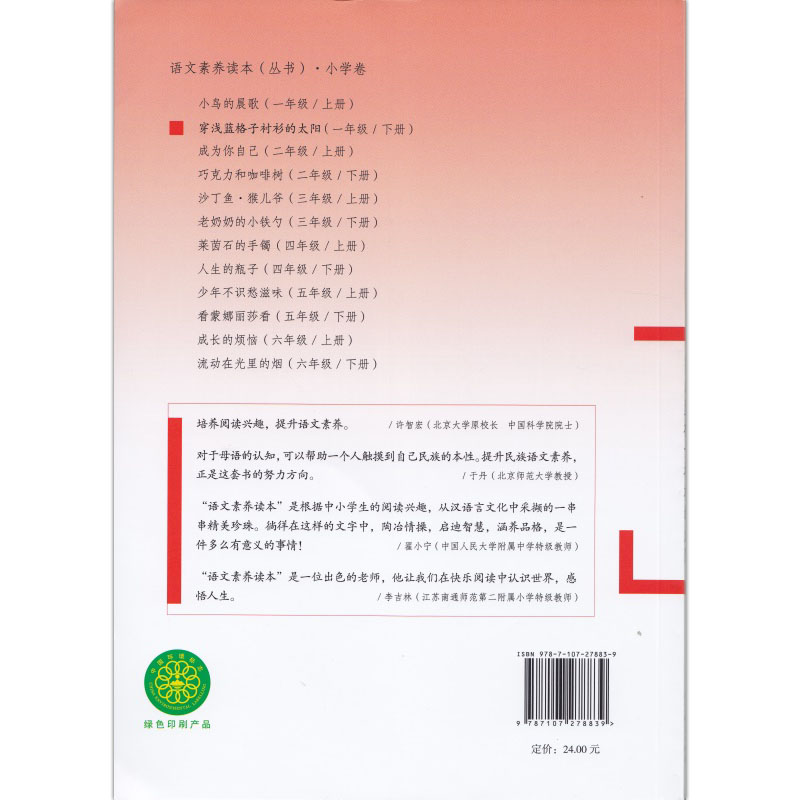 小学卷一年级下册穿浅蓝格子衬衫 2024人民教育出版 丛书 温儒敏主编小学生语文素养读本 太阳1年级下册语文阅读书籍 社出版