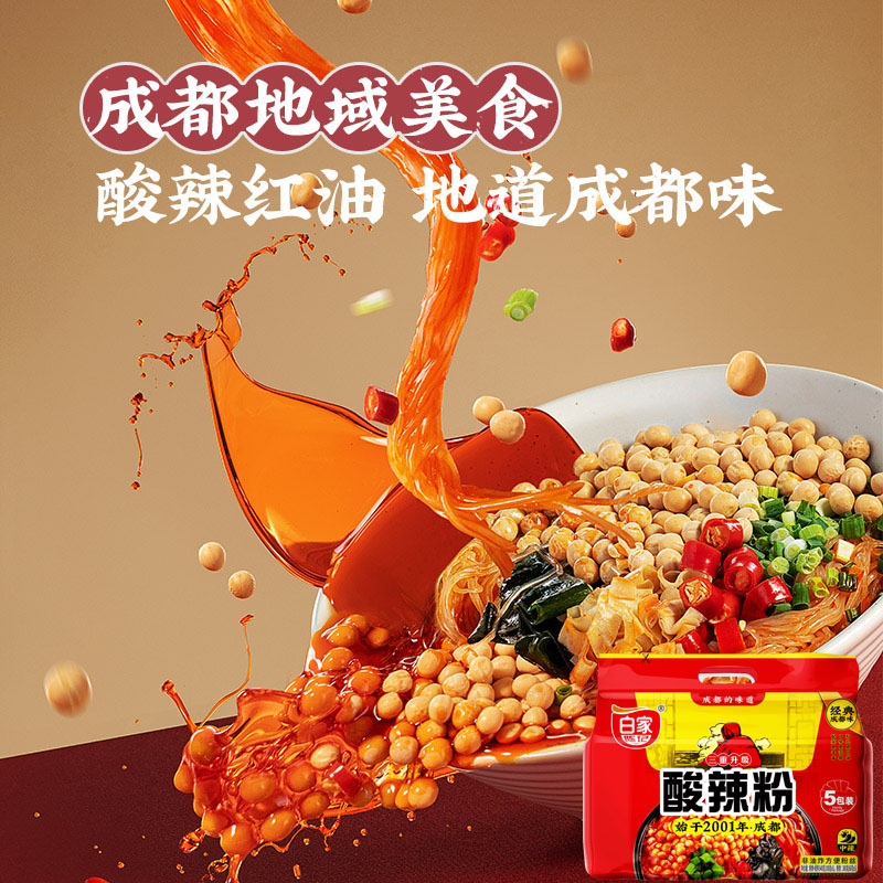升级款 酸辣粉肥肠味粉面皮方便面非螺蛳粉 白家陈记方便粉丝综合装