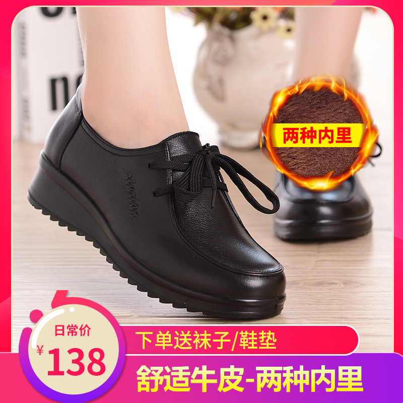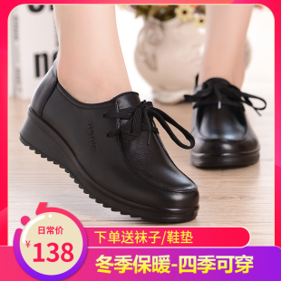 真皮软底休闲皮鞋 单鞋 女平底老人鞋 中老年女鞋 大码 旺奈秋冬妈妈鞋