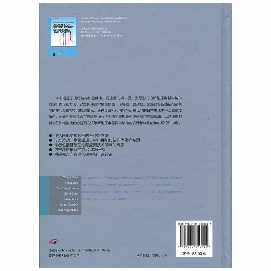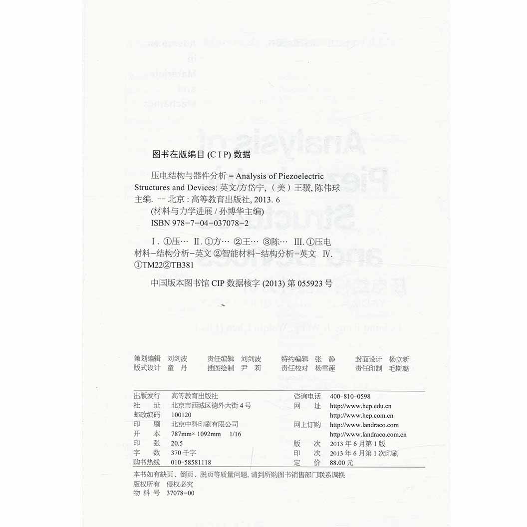 王骥 陈伟球 高等教育出版 压电结构与器件分析 材料与力学进展9 方岱宁 社 智能材料结构分析 英文版