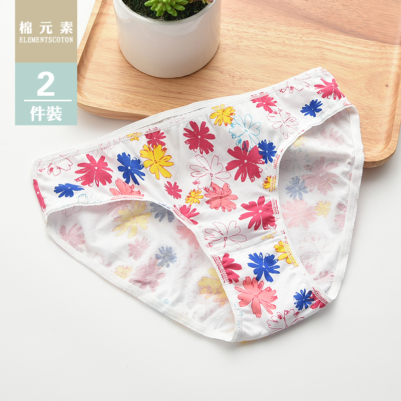 素 LM529纯棉舒适内裤 女士内裤 2条装 女 100%纯棉低腰三角内裤 棉元