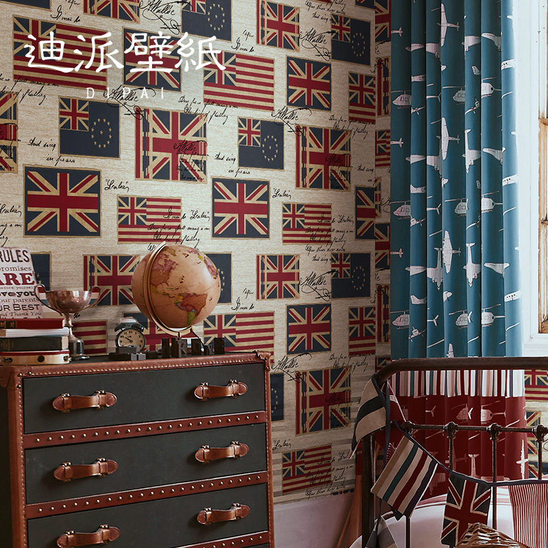 迪派复古个性 英伦格子米字旗英国国旗壁纸卧室背景墙儿童房墙纸