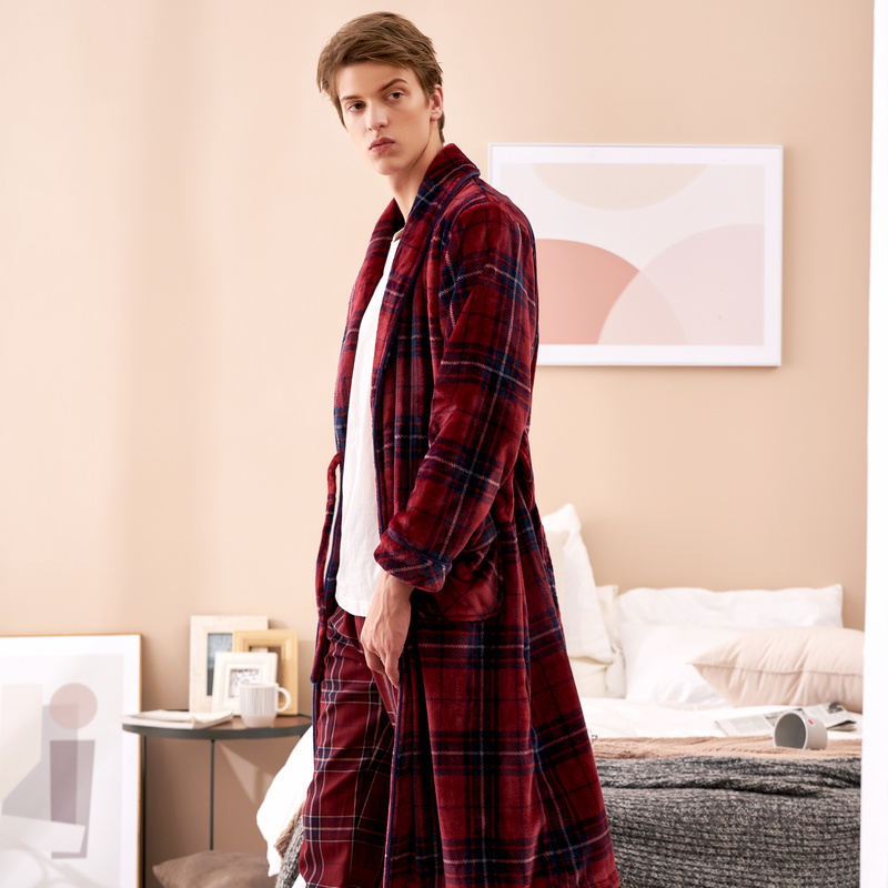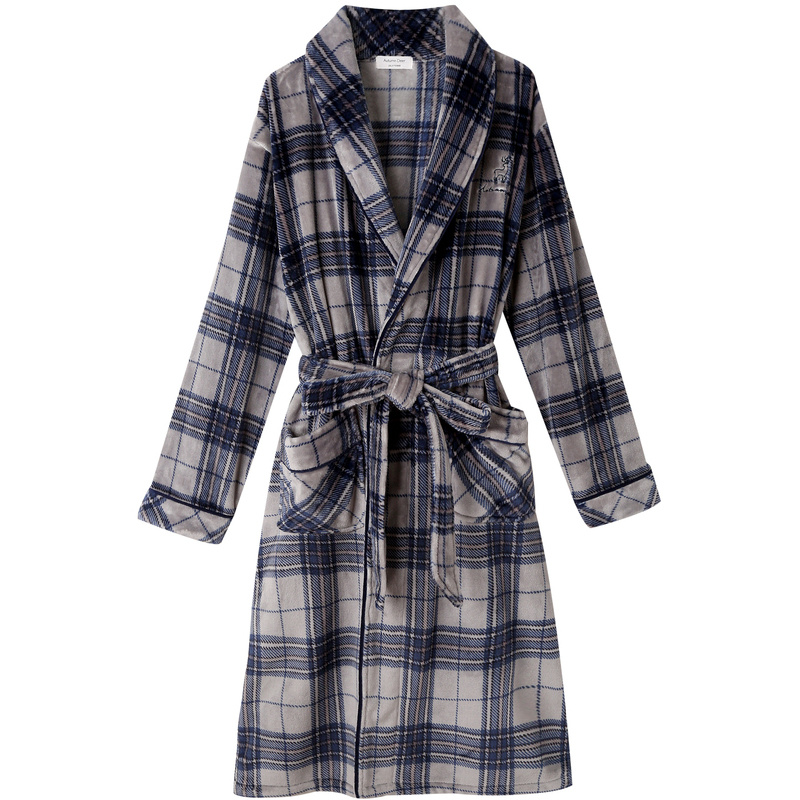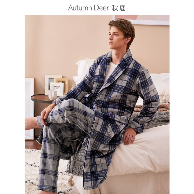 浴袍男士 秋鹿 秋冬季 清仓 法兰绒加厚青年家居服珊瑚绒睡袍 断码