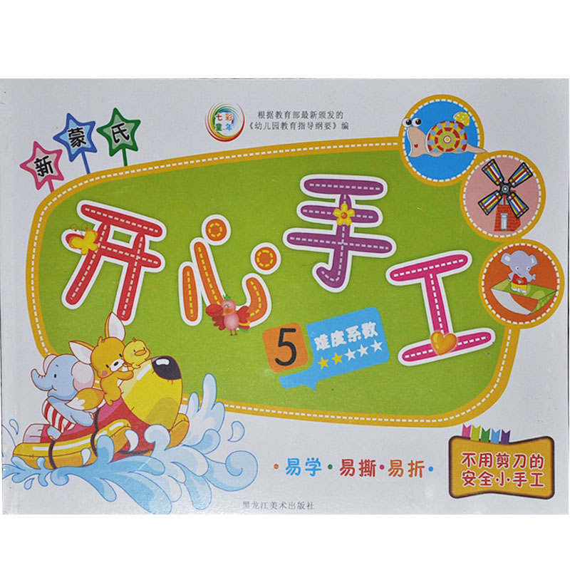 不用剪刀 活跃大脑思维培养耐心动手动脑开发智力 易学 易撕 新蒙氏开心手工1 安全小手工 共4册 易折 七彩童年