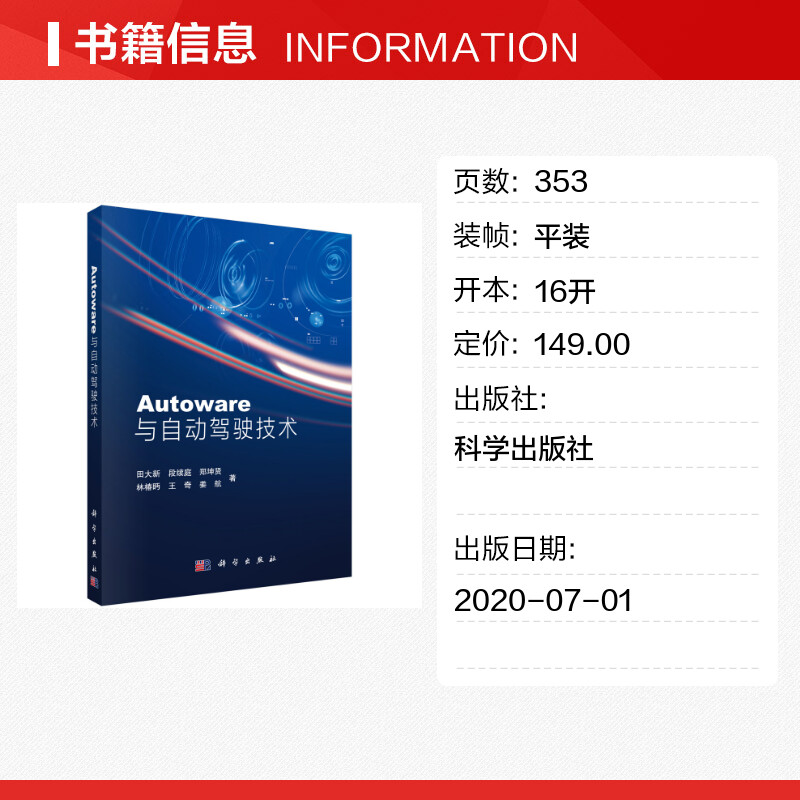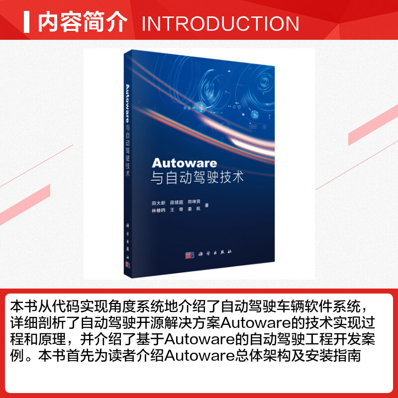图书籍 社 郑坤贤 著 自动化技术专业科技 王奇等 段续庭 林椿眄 科学出版 Autoware与自动驾驶技术 新华书店正版 田大新