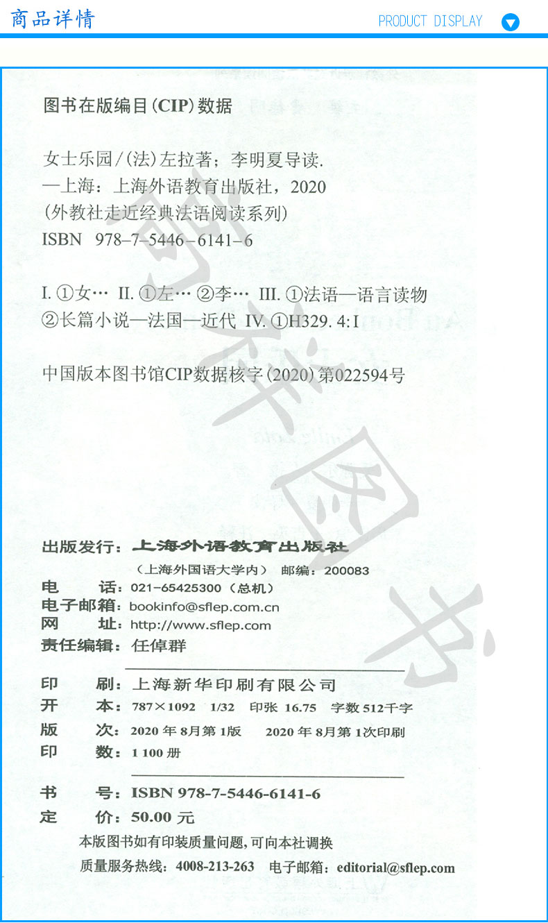 上海外语教育出版 9787544661416 法语版 曹德明 编 音频 女士乐园 扫码 社 外教社走近经典 法语故事 法语阅读系列