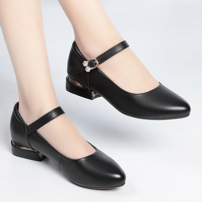 中跟真皮软底走秀鞋 平底浅口单鞋 舞蹈鞋 女鞋 妈妈鞋 大码 黑色软皮鞋