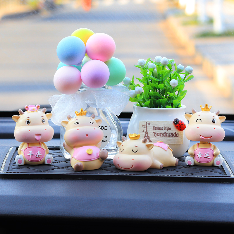 一路平安汽车牛摆件中控台高档创意漂亮车载可爱男女车内饰品摆饰
