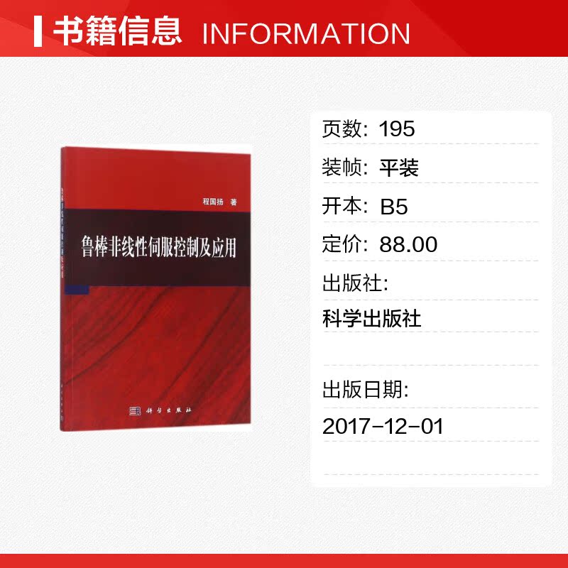 机械工程专业科技 著 新华书店正版 图书籍 社 鲁棒非线性伺服控制及应用 科学出版 程国扬