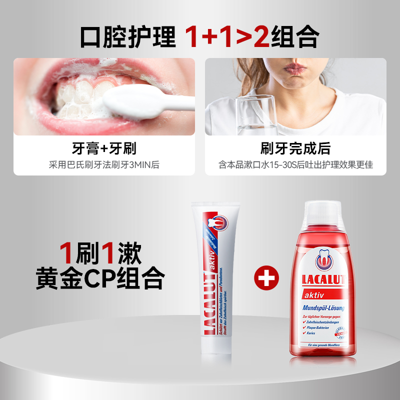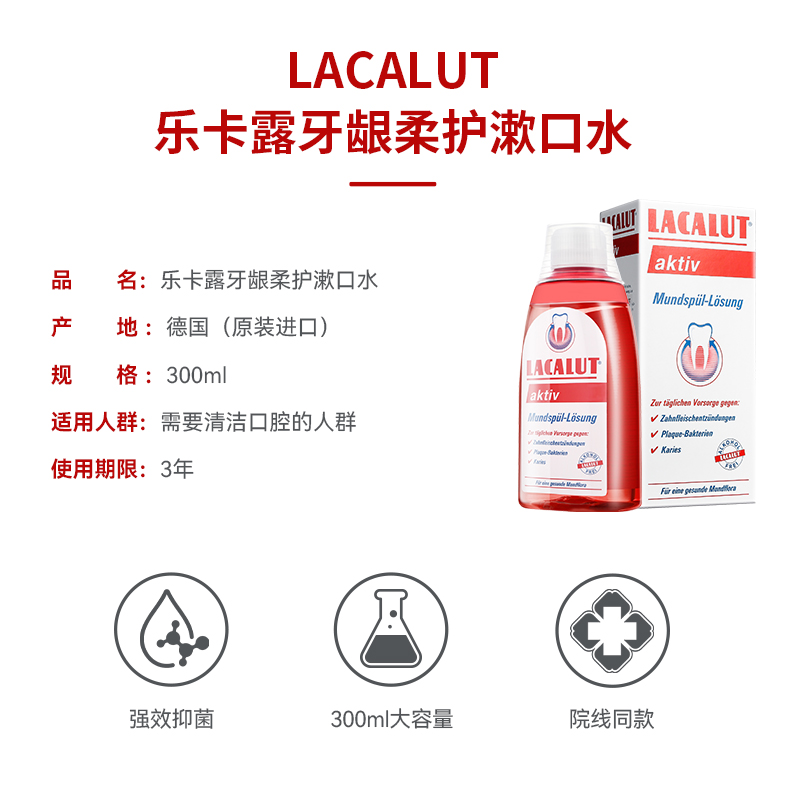 德国进口LACALUT乐卡露牙龈柔护漱口水300ml无酒精便携含氟抑菌